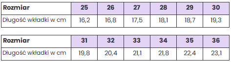 Tabela rozmiarów