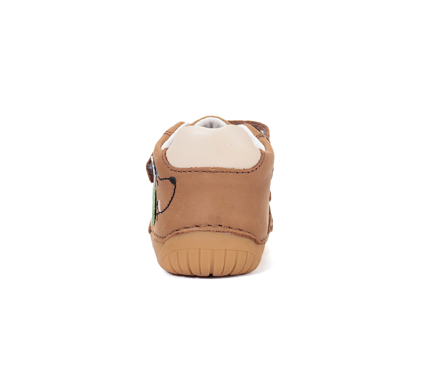 Brązowe półbuty DD Step Barefoot z aplikacją pieska to wygodne i zdrowe obuwie dla małych odkrywców. Naturalna skóra użyta w cholewce, podszewce i wkładce zapewnia oddychalność oraz komfort noszenia, nawet podczas intensywnych aktywności w ciągu dnia.