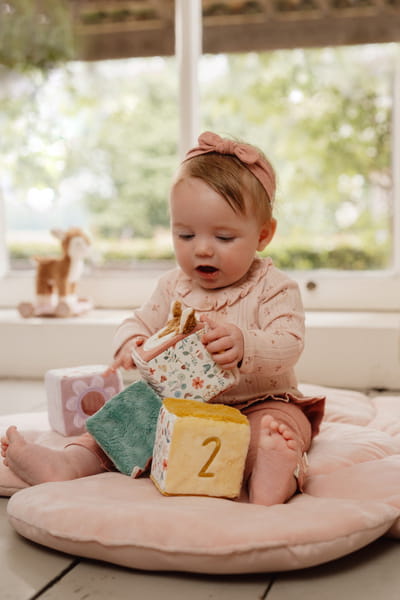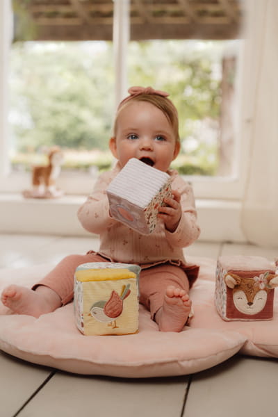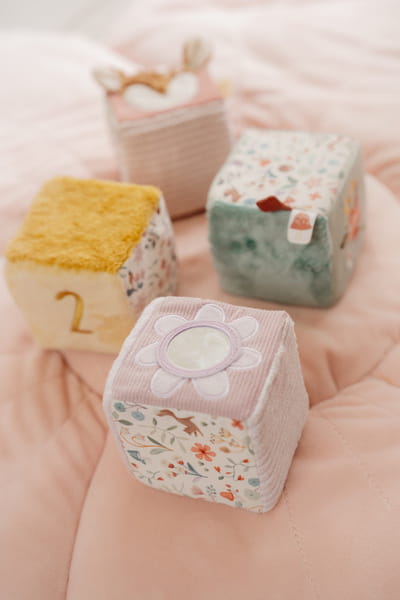 4 Miękkie kostki aktywizujące Fairy Garden od Little Dutch. Kostki zapewniają świetną zabawę i rozwijają zmysły sensoryczne malucha. Kostki w pastelowych odcieniach z motywem kolekcji Fairy Garden mają wiele ciekawych elementów do poznania – różne faktury i dźwięki materiału, metki i wypustki, a także uwielbiane przez dzieci lustereczko. Doskonale rozwijają koordynację ręka-oko. Stanowią idealnie uzupełnienie do pozostałych produktów z kolekcji Fairy Garden. Wspaniały pomysł na prezent.