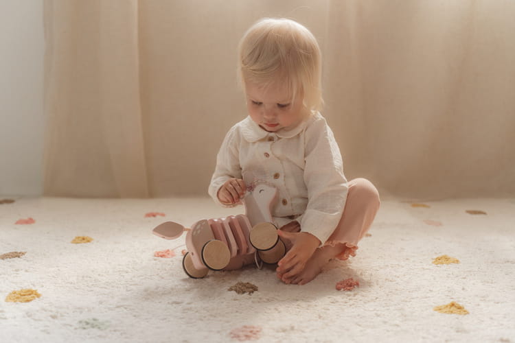 Sarenka do ciągnięcia Fairy Garden FSC od Little Dutch. Ta sarenka jest gotowa, aby rozpocząć przygodę! Wystarczy pociągnąć za sznurek i obserwować, jak sarenka z gracją wyruszy w czarującą podróż do bajkowego ogrodu, aby wspólnie odkryć jego piękne kwiaty i inne cuda. Wykonana z wytrzymałego drewna i ozdobiona kolorowymi pierścieniami, sarenka nie tylko zapewnia niekończącą się zabawę, ale także zachęca malucha do chodzenia i pomaga w rozwoju motorycznym. Stanowi świetny pomysł na prezent i doskonałe uzupełnienie dla pozostałych zabawek z kolekcji Fairy Garden od Little Dutch.