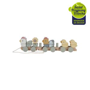 Pociąg zwierzątka Little Farm FSC od Little Dutch. Drewniany pociąg od Little Dutch z motywem z bohaterami kolekcji Little Farm. Dzięki klockom w różnych kształtach i kolorach można budować kurczaczki i pisklęta, dopasowywać klocki wedle koloru lub własnej wyobraźni. Pociąg składa się łącznie z 17 części i ma około 40 cm długości. Ta zabawka fantastycznie rozwija motorykę i jest również miłym dodatkiem do pokoju dziecięcego. Zabawka wykonana jest z drewna z certyfikatem FSC i pokryta farbami na bazie wody. Stanowi świetny pomysł na prezent i doskonałe uzupełnienie dla pozostałych zabawek z kolekcji Little Farm od Little Dutch.