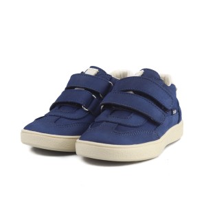 Model wykonano z naturalnej skóry nubukowej, która jest miękka i trwała. Skórzana wkładka oraz podszewka zwiększają komfort noszenia i oddychalność. Usztywniona pięta pomaga utrzymać stopę w prawidłowej pozycji, a elastyczna podeszwa z termokauczuku ułatwia naturalny krok. Zapięcie na rzepy umożliwia łatwe zakładanie i dobre dopasowanie.