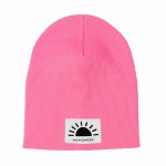 MINIMIKI Czapka prążkowana podwójna dziecięca candy pink różowa KWIATKI