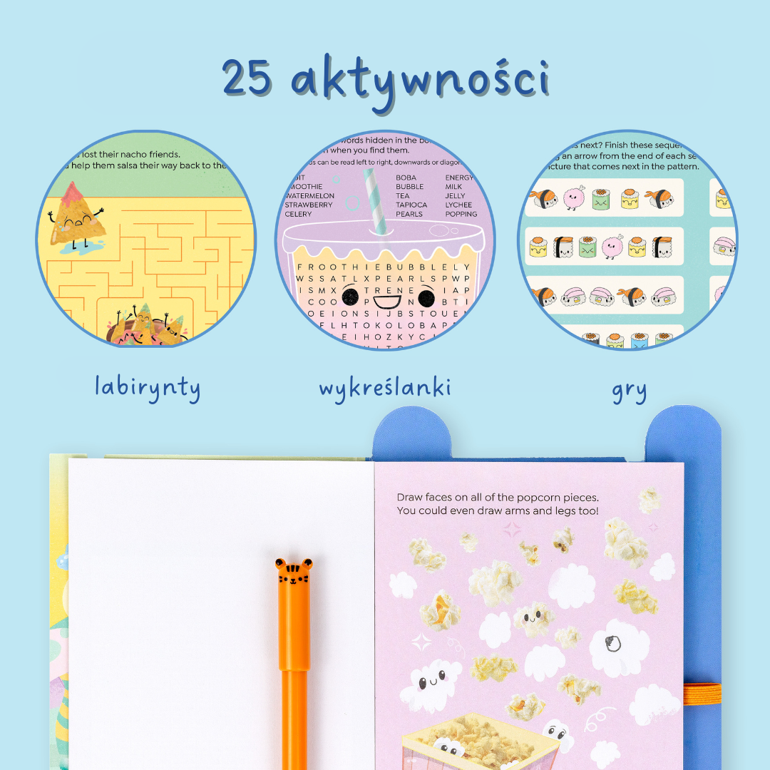 Deszczowy dzień, a Twoje dziecko się nudzi? A może długa podróż samochodem i pytanie „daleko jeszcze?” pada co pięć minut? W takich momentach świetnie sprawdza się zestaw aktywności o tematyce kulinarnej. To kompaktowa książeczka pełna łamigłówek, labiryntów i gier słownych, która zajmie malucha na długie chwile i przy okazji rozwinie jego kreatywność.