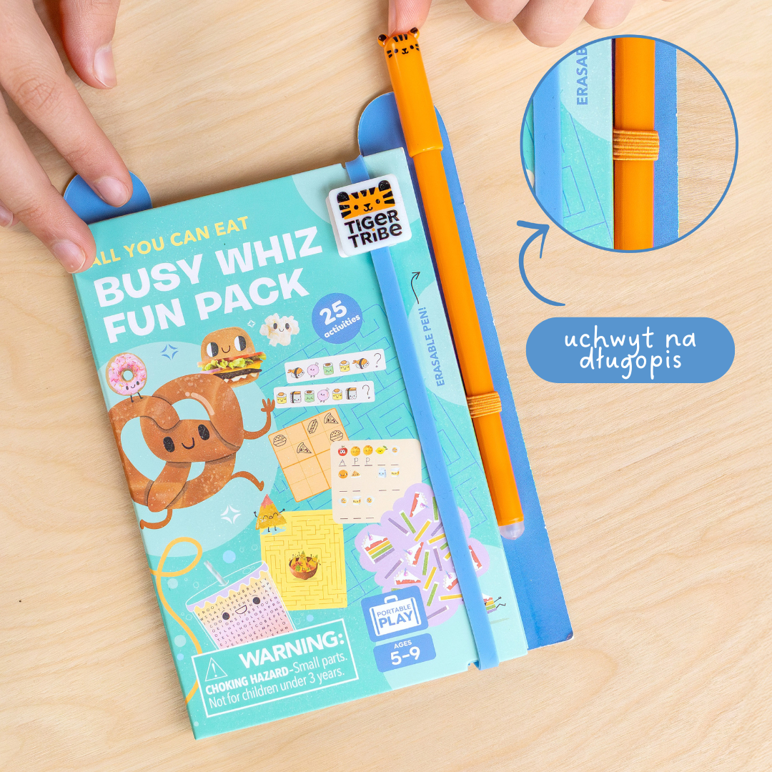 Zestaw aktywności kulinarnych to świetny sposób na wspieranie dziecięcej ciekawości i kreatywności. Maluchy ćwiczą spostrzegawczość, cierpliwość i zdolności manualne, jednocześnie świetnie się bawiąc. Dzięki poręcznemu formatowi i zmazywalnemu pisakowi możesz zabrać go wszędzie - w podróż samochodem, w samolot czy do poczekalni.
