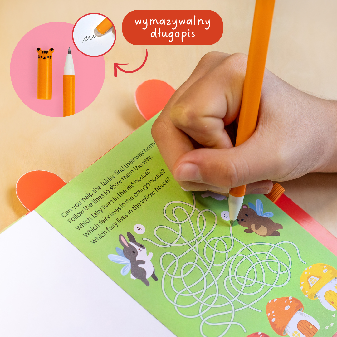 Zestaw aktywności z motywem wróżek to świetny sposób na wspieranie dziecięcej ciekawości i kreatywności. Maluchy ćwiczą spostrzegawczość, cierpliwość i zdolności manualne, jednocześnie świetnie się bawiąc. Dzięki poręcznemu formatowi i zmazywalnemu pisakowi możesz zabrać go wszędzie - w podróż samochodem, w samolot czy do poczekalni.