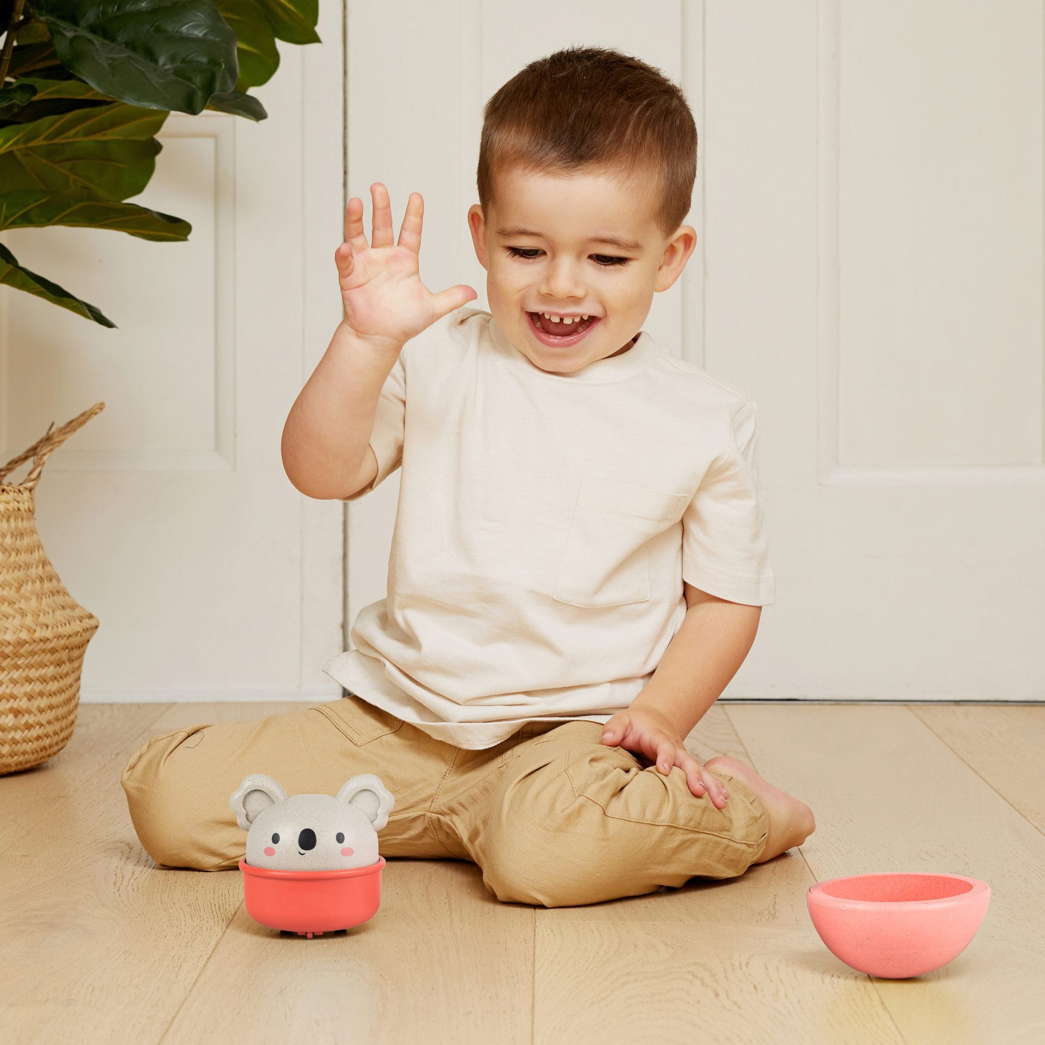 Rocking Rollers - Koala od Tiger Tribe to najfajniejsza i najbardziej wszechstronna zabawka dla dzieci! Ten przyjaciel najmłodszych kołysze się tam i z powrotem, zapewniając godziny rozrywki. A kiedy zdejmiesz podstawkę, naciśniesz głowę swojego małego przyjaciela - zobaczysz jak sunie po pokoju na wbudowanych kółkach. Nie ma ograniczeń tego, co Twoje dziecko może zrobić z kołyszącym koalą. Produkt jest częścią nowej serii ECO - produktów stworzonych z bioplastiku.