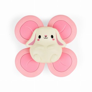 Spinner Sensoryczny - Króliczek od Tiger Tribe to uwielbiana przez dzieci zabawka, tym razem pod postacią uroczego króliczka z wirującymi spinnerami. To angażująca zabawka sensoryczna do dotykania, potrząsania (wydaje dźwięk grzechotania), żucia i kręcenia. Zaprojektowane, aby zachęcać niemowlęta i małe dzieci do rozwijania umiejętności motorycznych, zabawy sensorycznej i nauki przyczynowo-skutkowej. Kontury i faktury zachęcają małe rączki do chwytania i kręcenia. Mocna przyssawka umożliwia łatwe przymocowanie do każdej gładkiej, nieporowatej powierzchni (np. wanny, kafelków, wysokich krzeseł, lustra, lodówki i szyb samochodowych). Spinner mocno się trzyma, umożliwiając stabilne obroty i samodzielną zabawę.
