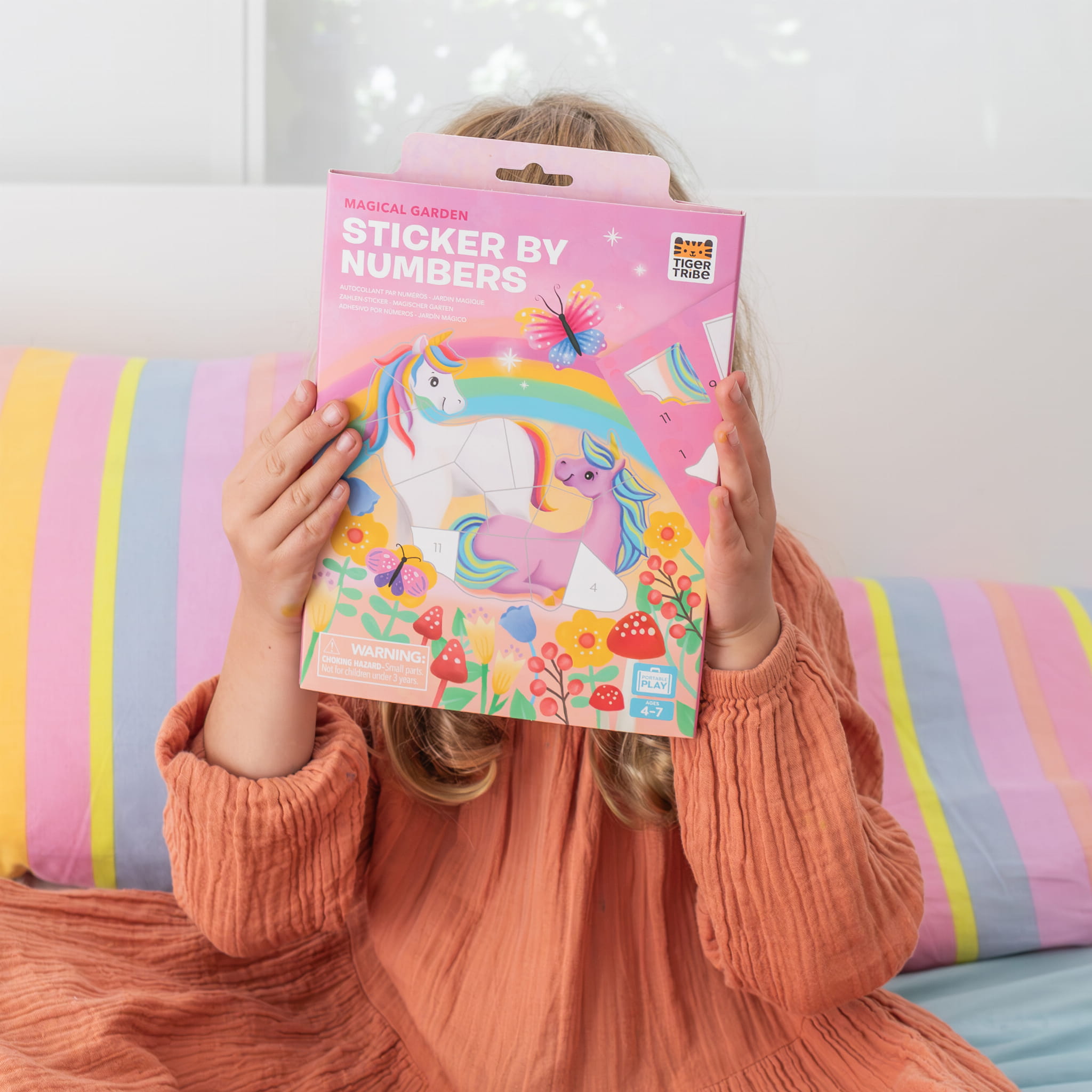 Wyklejanie po Numerach - Magiczny Ogród od Tiger Tribe. W tym zabawnym zestawie jest mnóstwo magicznych stworzeń w zaczarowanym ogrodzie! Miłośnicy naklejek będą zachwyceni dopasowywaniem ponumerowanych elementów naklejek do odpowiadających im wzorów, obserwując, jak dzieło sztuki pojawia się na ich oczach. Zapakowane w kompaktowe, samowystarczalne, magnetyczne, szczelne pudełko, dzieci mogą ćwiczyć rozpoznawanie liczb, jednocześnie rozwijając swoje umiejętności motoryczne i koordynację ręka-oko. Świetne do skupienia i koncentracji. Zestawy Tiger Tribe stanowią świetną alternatywę dla czasu spędzonego przed ekranem, promując uważność, relaks i odprężające zajęcie.